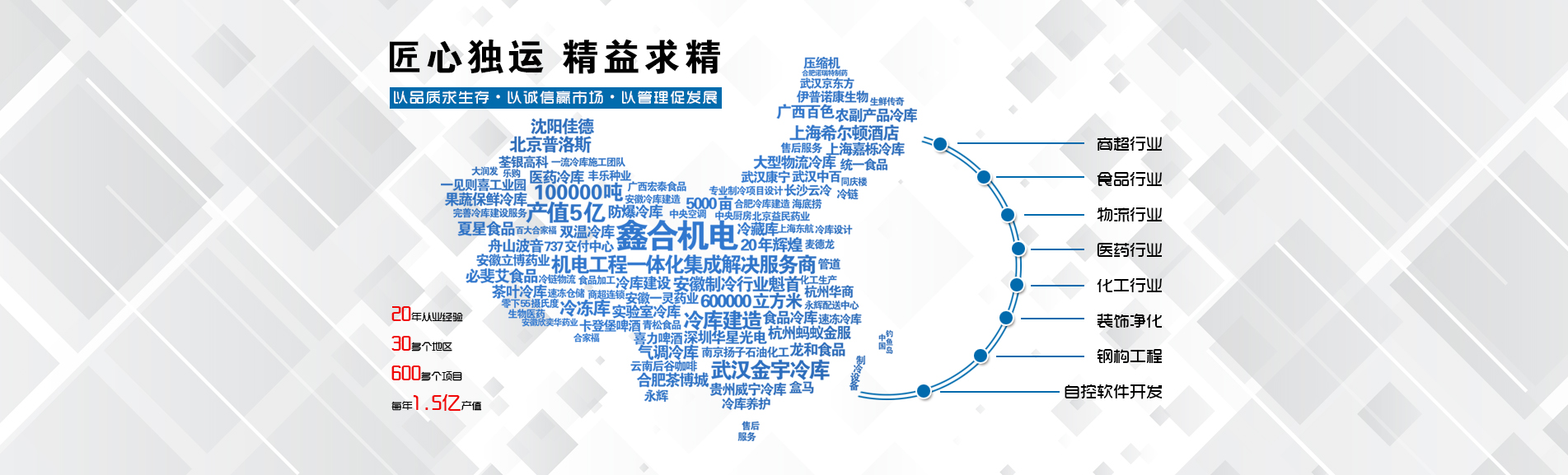 安徽鑫合機電設(shè)備有限公司于2002年組建運營,專業(yè)從事冷凍、冷藏庫、中央空調(diào)、醫(yī)藥凈化工程的規(guī)劃設(shè)計、施工承建、售后服務(wù)為一體的綜合性工程公司,與100多家實力雄厚的大中型企業(yè)建立長期產(chǎn)略合作關(guān)系,其中有多家世界500強和上市企業(yè)。公司作為中國倉儲與配送協(xié)會會員單位、安徽省制冷學(xué)會理事單位、上海楊浦區(qū)制冷協(xié)會工程總承包負責單位,引領(lǐng)于行業(yè)前沿。我們將銘記給予我們大力支持的各界新老朋友及合作伙伴,我們將會保持“互惠互利、共同發(fā)展”的原則與您共創(chuàng)雙嬴的合作關(guān)系。
