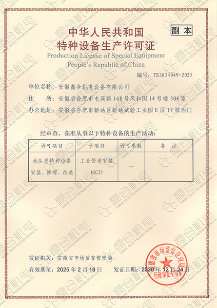 目前我公司具有建筑機電安裝工程專業(yè)承包一級資質(zhì)、總承包二級、GC2壓力管道設(shè)計、施工資質(zhì)?,F(xiàn)有高級工程師5名、高級技師55名、工程師22名、助工25名、技術(shù)員22名、各類專業(yè)技師50多名,強大的技術(shù)力量及精良的施工隊伍,為客戶提供全方位服務(wù)。 公司本著“一切為了用戶”的經(jīng)營理念,“以品質(zhì)求生存、以誠信贏市場、以管理促發(fā)展”為要求,努力為廣大客戶提供專業(yè),優(yōu)質(zhì)、高效的服務(wù)。